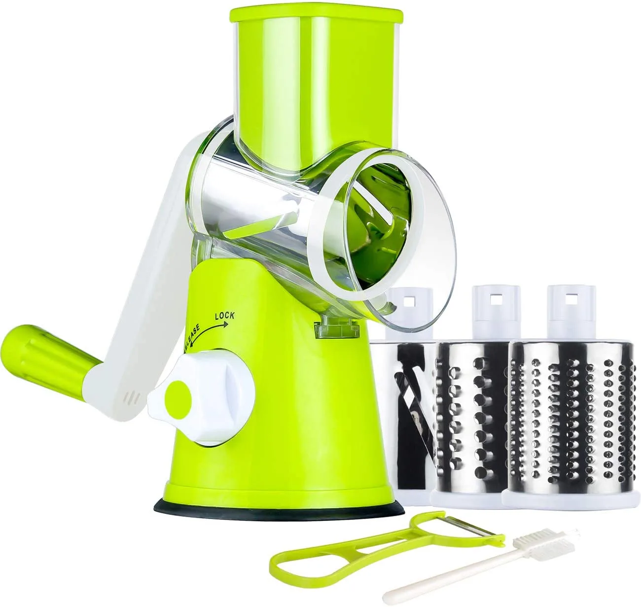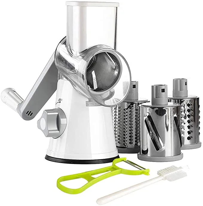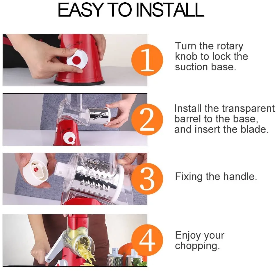 A strong suction base grips securely to CLEAN and SMOOTH countertop for effortless chopping. 3 drum blades meet your different needs!
