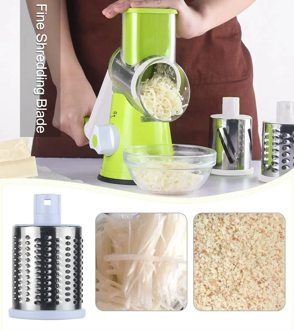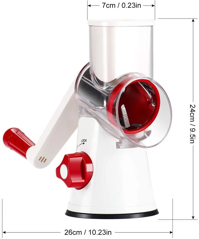 With our cheese shredder grater, you can get food preparation more efficiently with minimum effort. 360 degree blades cuts foods all the time when you crank the handle.Humanity Design Rotary Grater